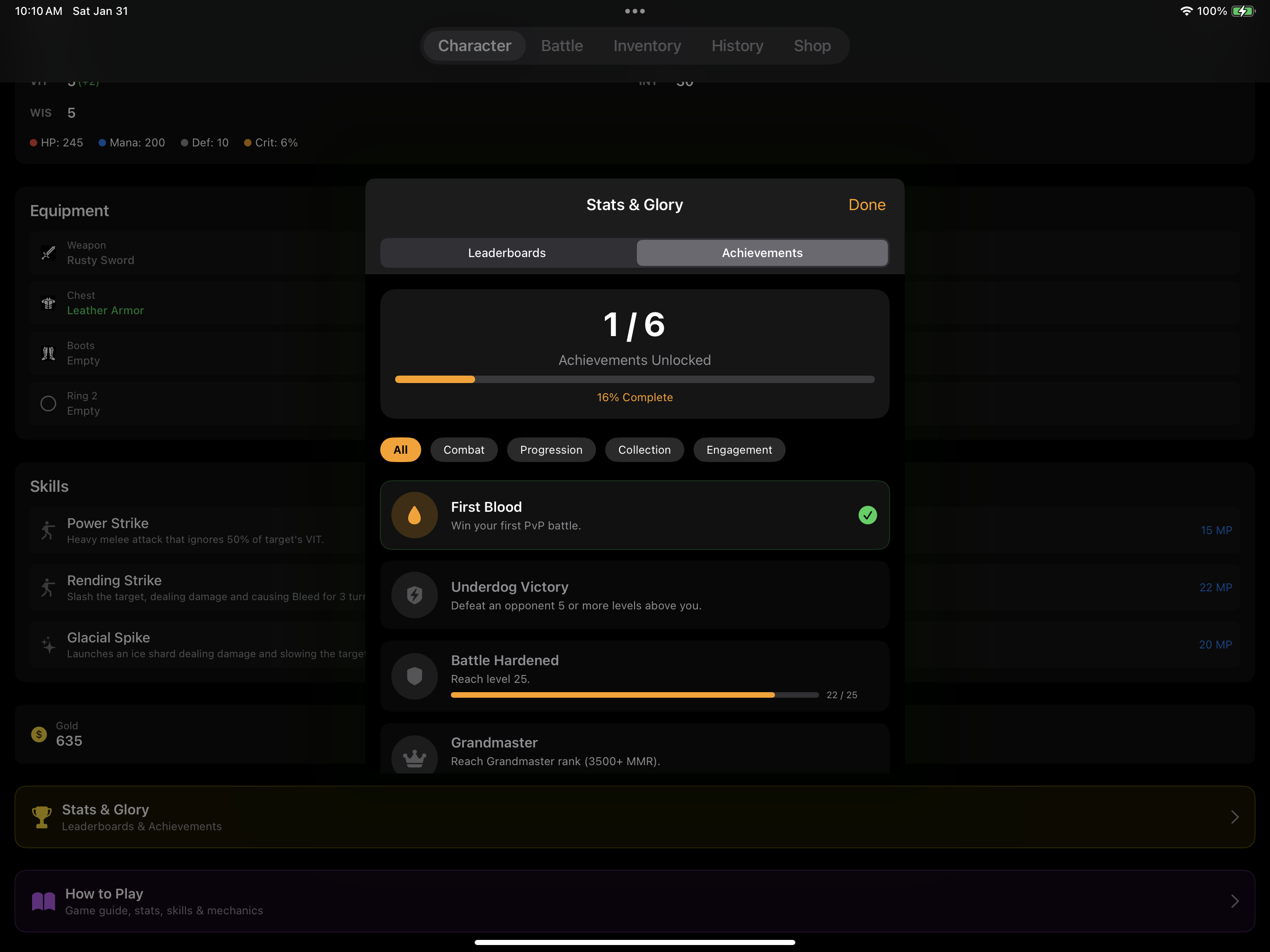 - Unlock achievements for battle victories, level milestones, and loot collection