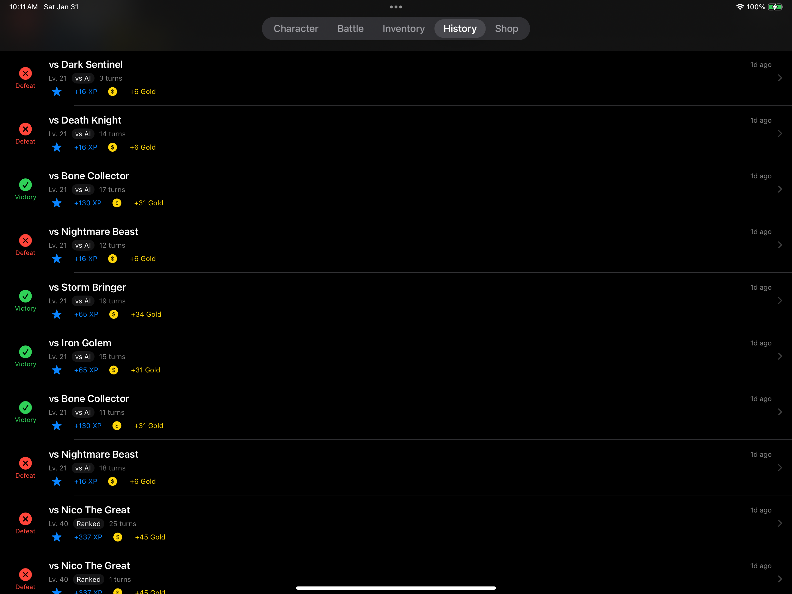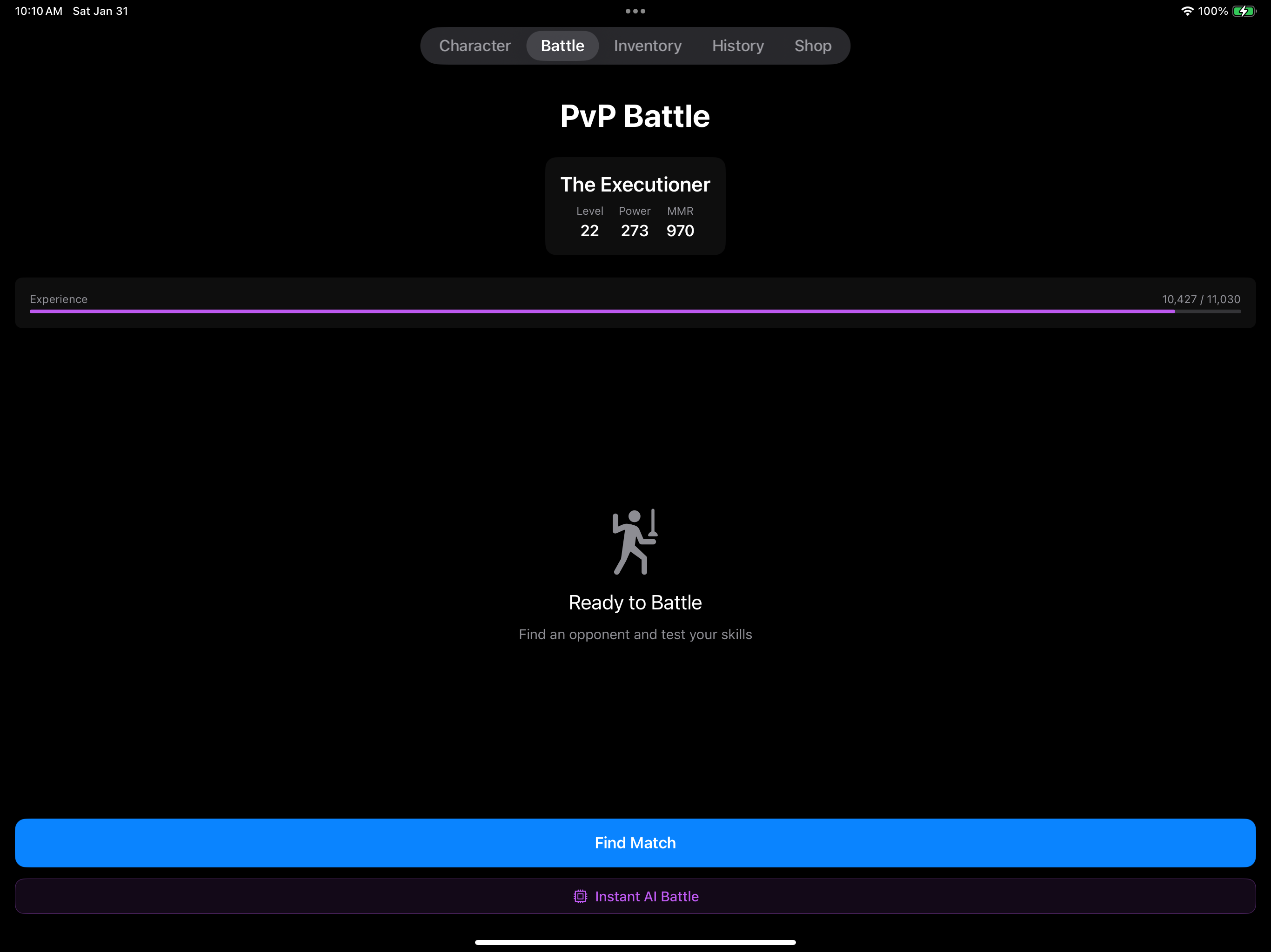 - Gain XP from PvP battles and level up your character